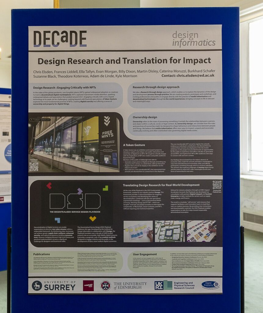 Design Informatics poster displayed at The Decade Symposium on the Decentralised Digital Economy.